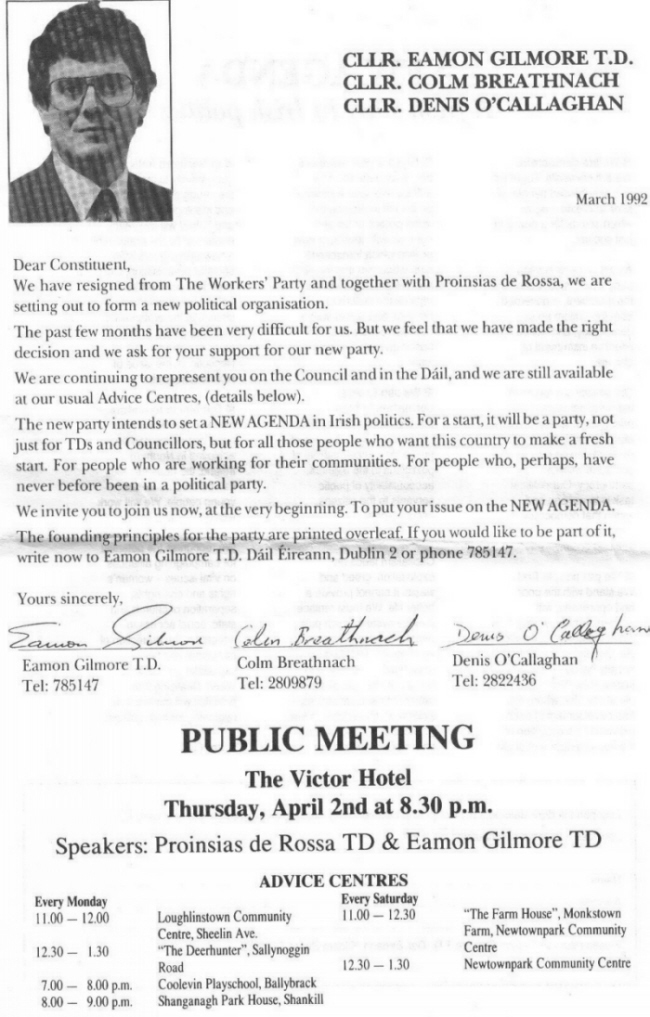 ‘New Agenda’ (post Workers Party pre Democratic Left) -Eamon Gilmore, Colm Breathnach and Denis O’Callaghan Letter. » newagenda1a