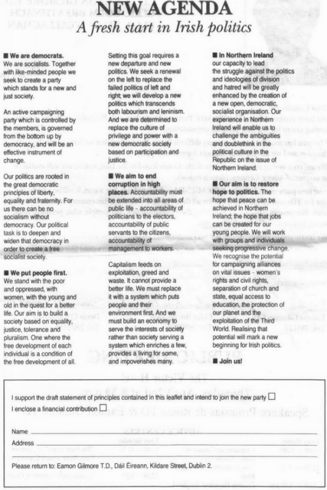 ‘New Agenda’ (post Workers Party pre Democratic Left) -Eamon Gilmore, Colm Breathnach and Denis O’Callaghan Letter. » newagenda2a