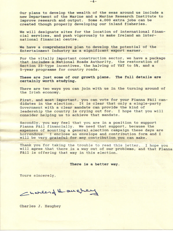 […] Starting off with a request….. A fund raising Letter from Charles Haughey to Business People from 1986 […]
