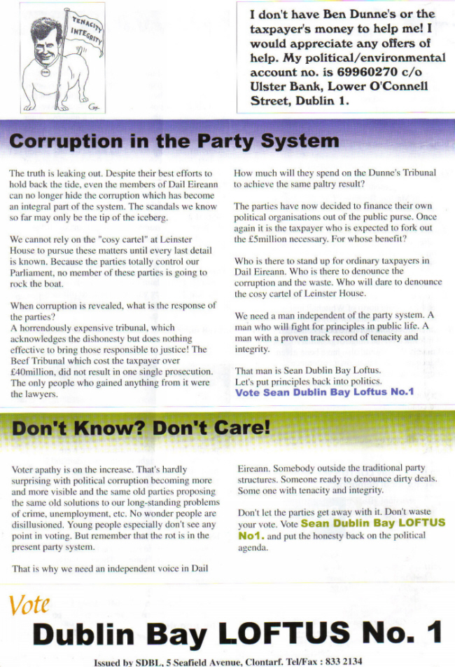This was just as the Tribunals had started and he is running on an ‘anti sleaze’ ticket. He makes some good observations in the manifesto.