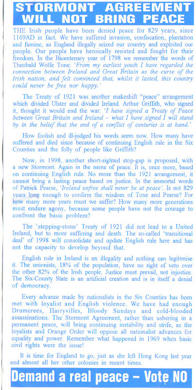 Republican Sinn Fein- NO to The Good Friday Agreement and NO to Amsterdam September 11, 2009