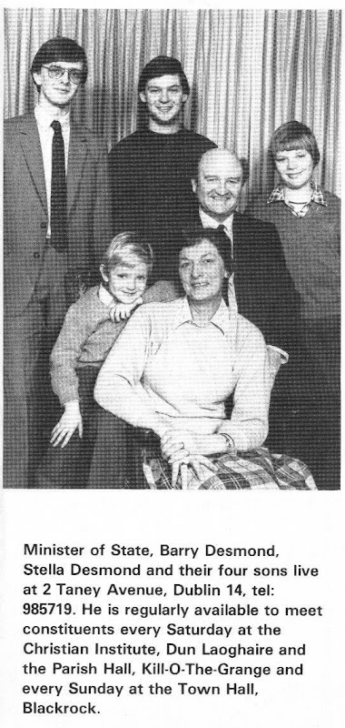 Barry Desmond served 7 Dail Terms before in 1989 he was elected to The European Parliament for Dublin. He held a number of ministerial appointments and also served as deputy leader of the Labour Party. He then served on the European Court of Auditors.