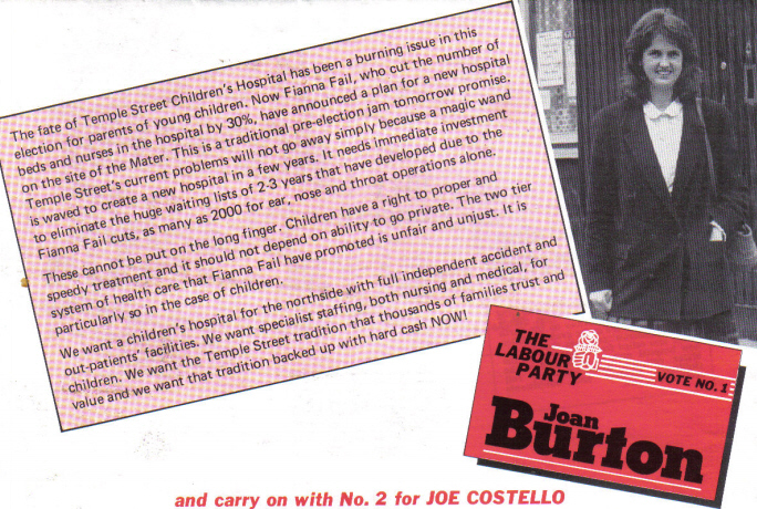 Joan Burton lost her deposit as she ran for Labour alongside Joe Costello in 1989 in Dublin Central. She subsequently moved to the Dublin West Constituency.