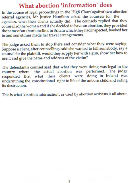 As the debate over the X case and the right to information gained momentum, SPUC (Society for the Protection of Unborn Children) put this four page leaflet (complete with graph) out regarding Information. The referendum hadn’t yet been announced, but there was undoubtedly going to be one regarding Abortion Information as well as the other issues.