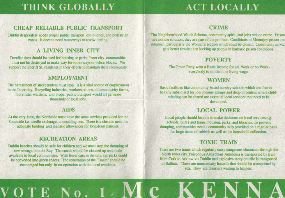 Patricia McKenna in what I think was her first electoral outing. She was Roger Garlands Dail Adviser and co-secretary of the European Greens.