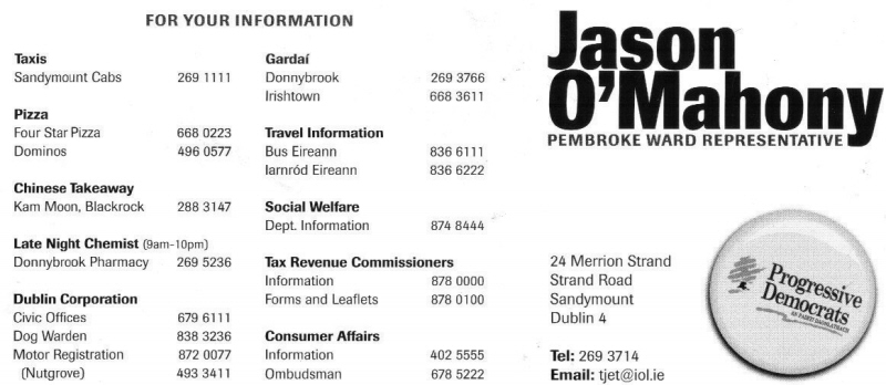 Jason O’Mahony- Progressive Democrat -Pembroke 1999 » jomb