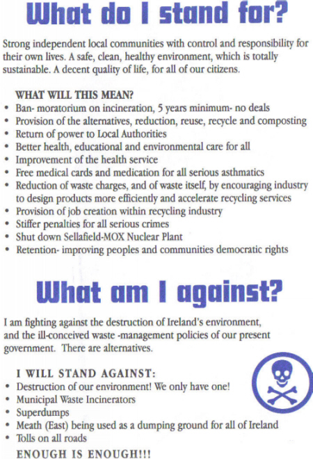 Leaflet from Pat O’Brien -Anti Incinerator Independent-Meath 2002 General Election » pobantimeath02c