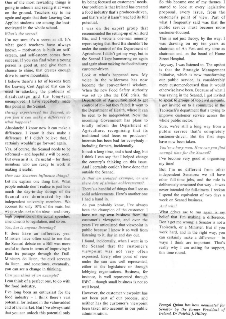 20 Questions to Feargal Quinn- Seanad leaflet 1997 » FQuinn97c