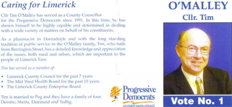 Tim O’Malley – Progressive Democrat -1998 Limerick East By-election » Tomalley98a