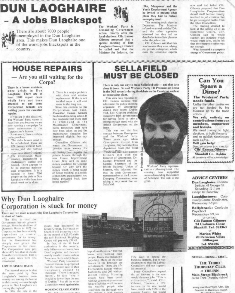 A couple of nice things in this from Summer 1986. A number of Workers Party ‘papers’ had the ‘People’ title. A ‘Dublin People’ was produced for the 1994 European elections and of course the Workers Party weekly paper was ‘Tomorrows People’.