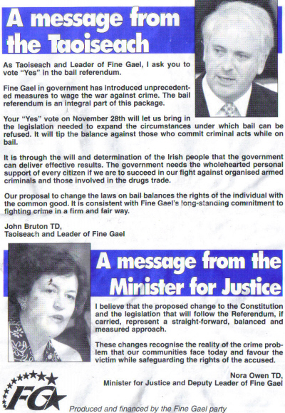 Fine Gael ‘Yes’ to Bail Referendum 1996. » FGbail96d