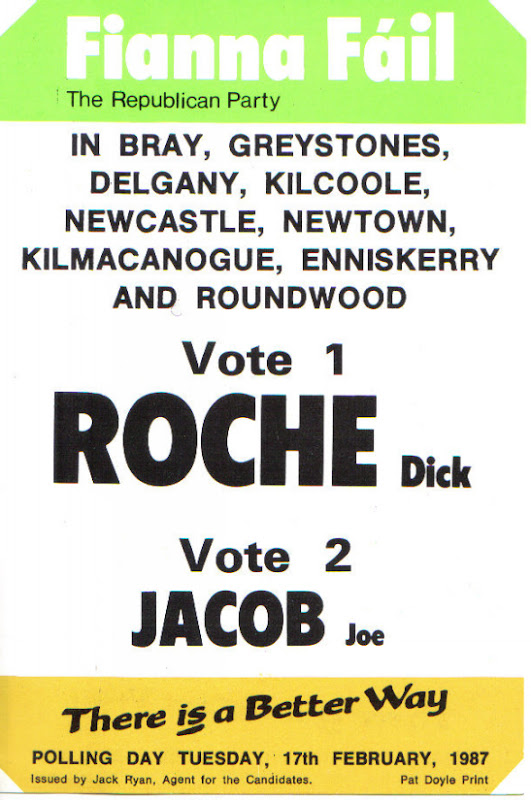 Dick Roches first attempt at a Dail seat in 1987. He won a seat. Nothing much to it only a lovely picture of Dick and a few other bibs and bobs.