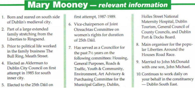 Mary Mooney- Fianna Fail- Dublin SE 1992 » ffdsemooney2
