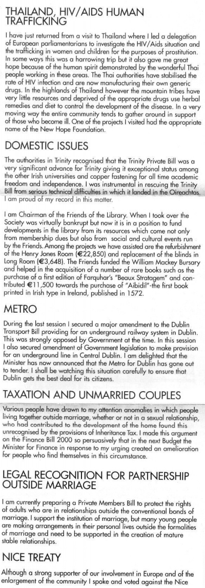 Senator David Norris Newsletter 2002 » norris2a1