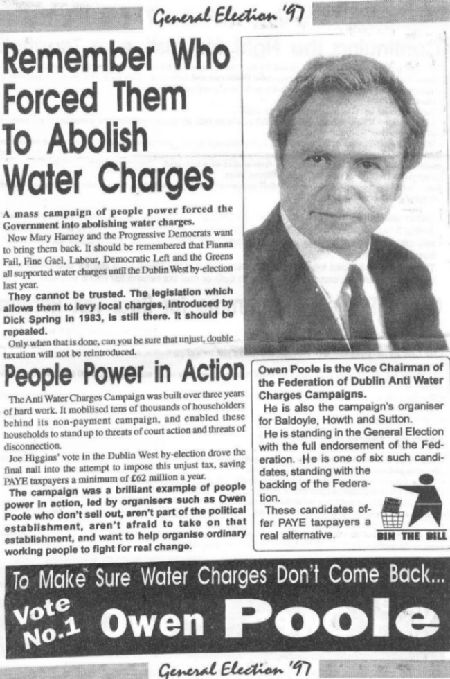 Owen Poole -Anti Water Charges Campaign 1997 Dublin North-East » poole97a