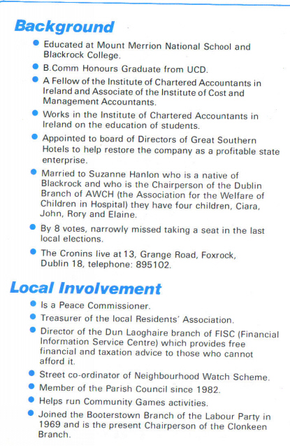 Leaflet from Kevin Cronin- Labour – Blackrock 1985 Local Elections » kcronin85b