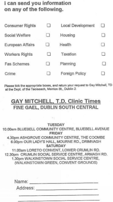 Gay Mitchell -Fine Gael -‘Sorry I Missed You’ 1997 » mitsimu97a