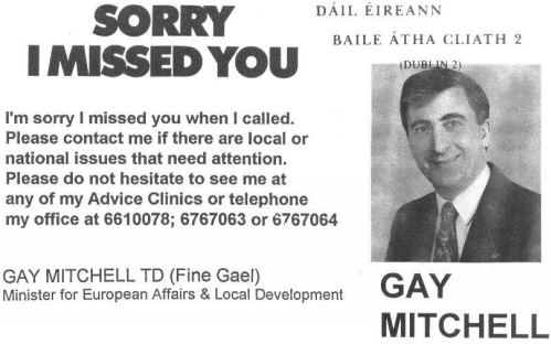 Gay Mitchell -Fine Gael -‘Sorry I Missed You’ 1997 » mitsimu97b