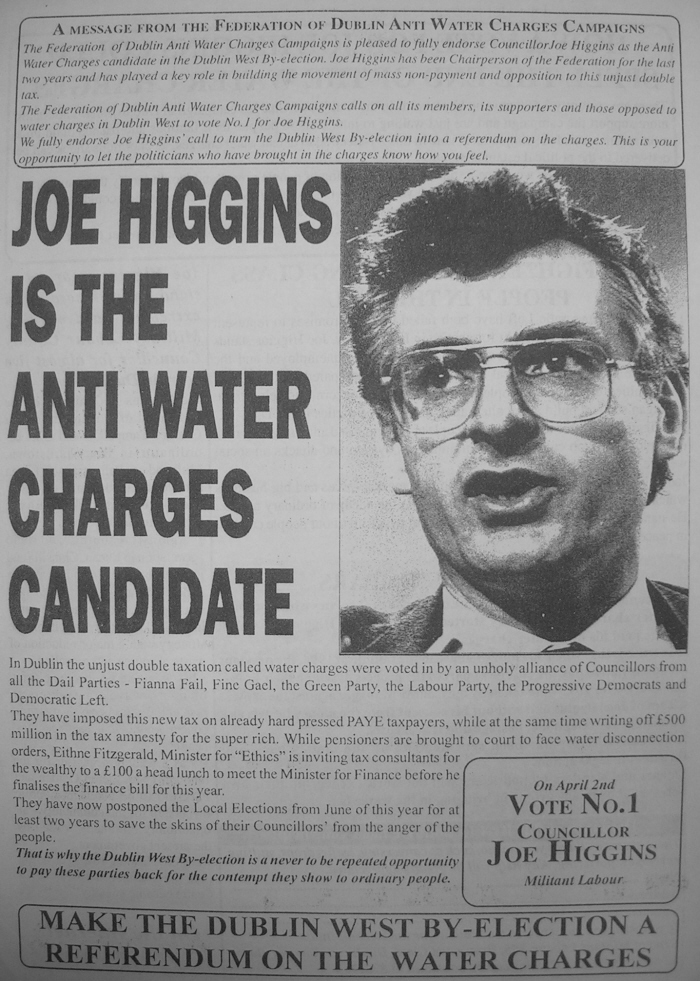 Joe Higgins- Militant Labour -1996 Dublin West By-Election (Leaflet 1 -Water Charges) » joeh96b1