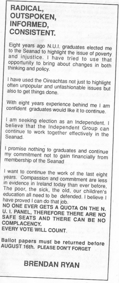 Brendan Ryan – “A Voice for the Voiceless” NUI Seanad 1989 » bryan89a3
