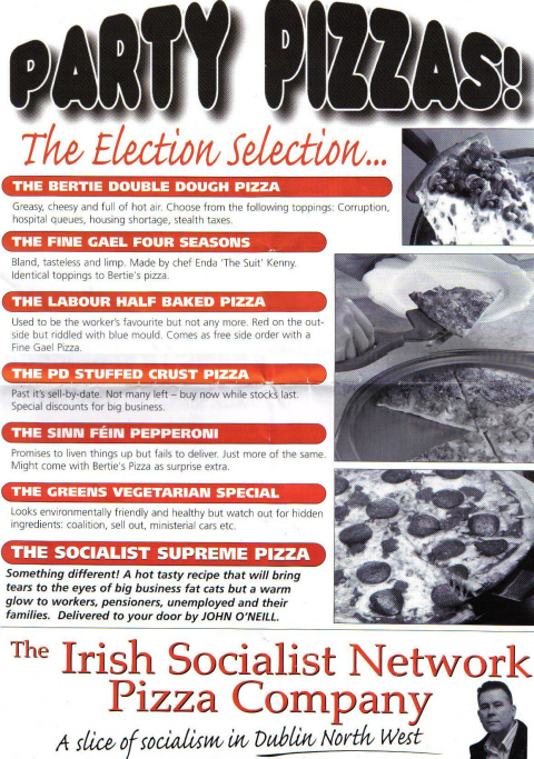 “Party Pizzas! -The Election Selection” -John O’Neill -Irish Socialist Network 2007 » isnpizza2