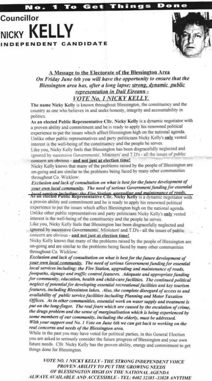 […] Nicky Kelly running as an Independent in 1997 […]