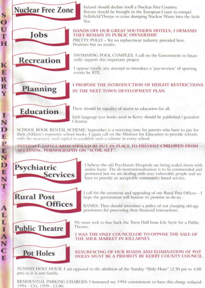 Michael Gleeson-South Kerry Independent Alliance (SKIA) 1999 LE. » skia99c