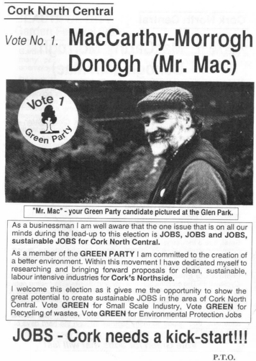 Donogh MacCarthy Morrogh (Mr Mac) – Green Party -Cork North Central 1992 » mccartmo92a