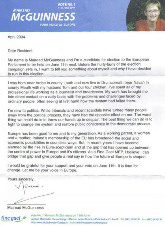 Mairead McGuinness Letter to electors -Fine Gael -2004 European Elections- East » maireadmcguin2004