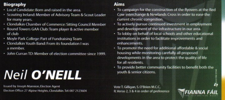 Young candidate, Neil O’Neill from the 2004 Local Elections where he failed to get elected for the Clondalkin Ward.