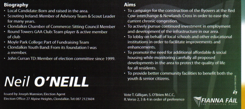 Neil O’Neill- Fianna Fail -Clondalkin 2004 LE » noneill2004leb