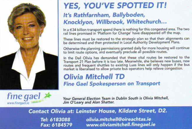 Olivia Mitchell -Fine Gael -2007 Dublin South » mitchelltrain2