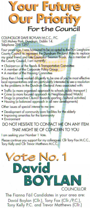 David Boylan -Fianna Fail -1999 Local Elections Dundrum » dboylandundrum99b