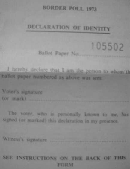 March 1973- Northern Ireland- ‘Border Poll’- Ballot,Envelope, Polling card etc » bpo73f