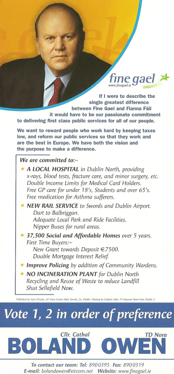 Nora Owen, Cathal Boland -Fine Gael -Dublin North 2002 GE » owenbol02b