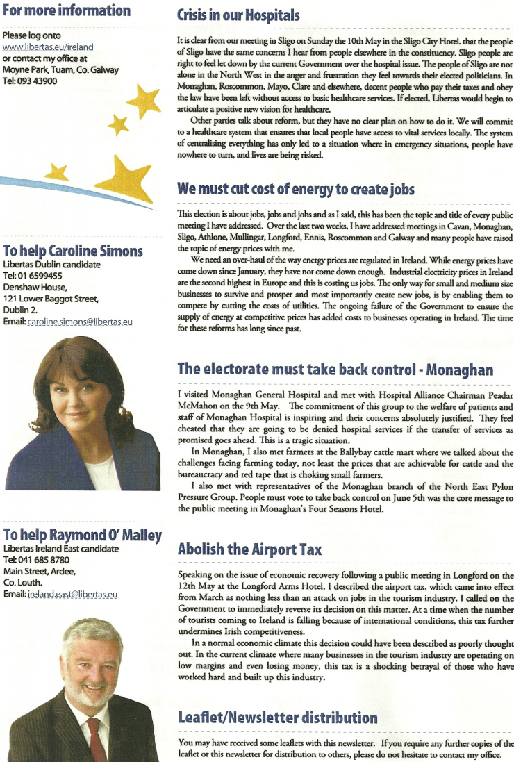 Not sure if this was a widely distributed newsletter or not. I think it was for canvassers. From the 2009 European Election campaign.