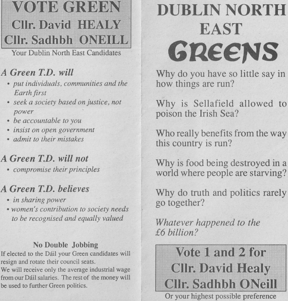 Sadhbh O’Neill, David Healy -Green Party -1992 GE Dublin NE » healyoneill92b