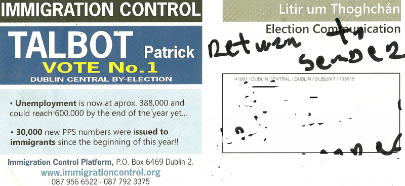 Pat Talbot- Immigration Control Platform -2009 Dublin Central By-Election » Ptalbot09a