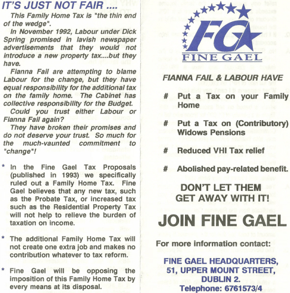 13 Responses to ““They Will Tax the Roof over Your Head” -Fine Gael anti Property Tax Leaflet 1994”