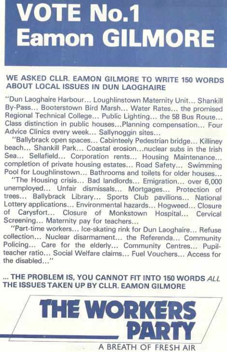 “150 words about local issues in Dun Laoghaire” Eamon Gilmore -Workers Party- 1989 GE » Gilmore89bfa2