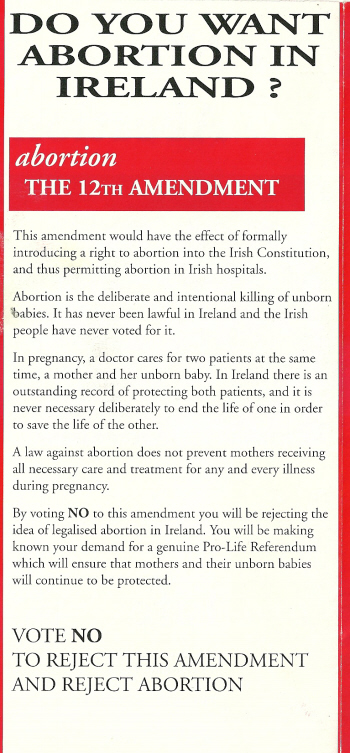 Pro Life Campaign Leaflet -1992 Abortion Referendum » prolifenb