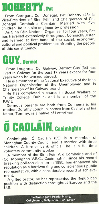 Pat Doherty, Dermot Guy, Caoimhghín Ó Caoláin -Sinn Fein -1989 European Elections Connaught/Ulster » cu89b1