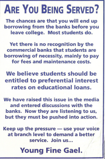 “Are you Being Served?” -Young Fine Gael give out about the Banks in 1990. » yfgbank