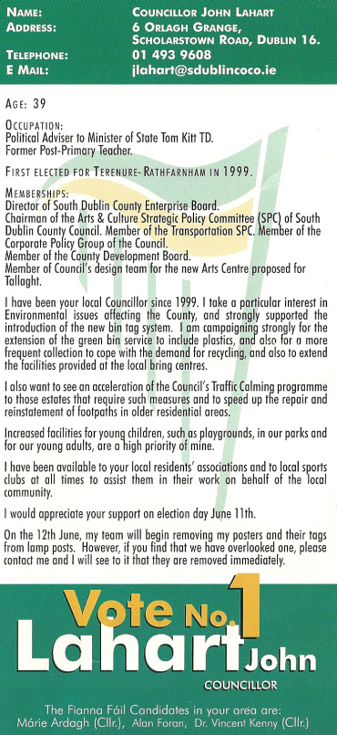 John Lahart -Fianna Fail -Rathfarnham 2004 Local Elections » jlahart04b
