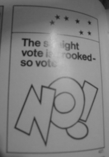 From the 1968 Referendum on Change in Voting System, two Labour Party ‘Vote No’ Posters
