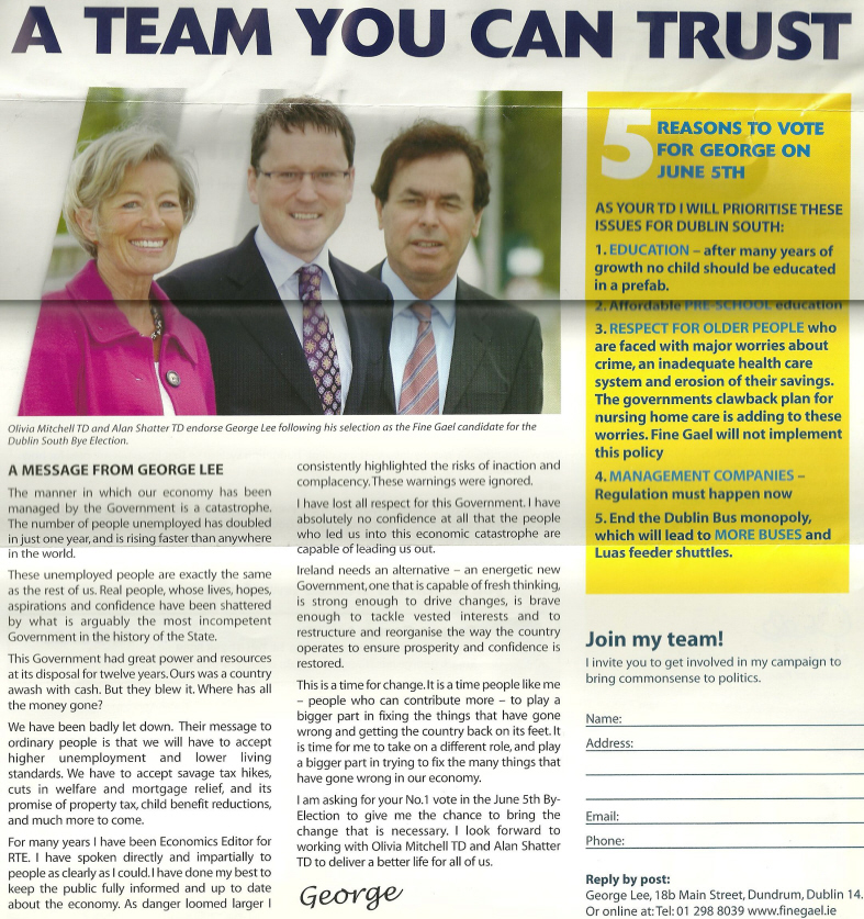 George Lee -Poster size leaflet (with great message from Enda)-Fine Gael 2009 Dublin South » george4