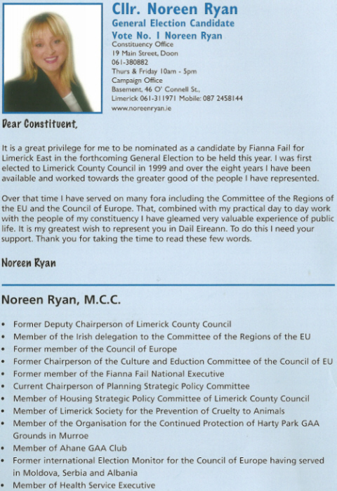 Fianna Fail candidate Noreen Ryan from the 2007 General Election in Limerick East.