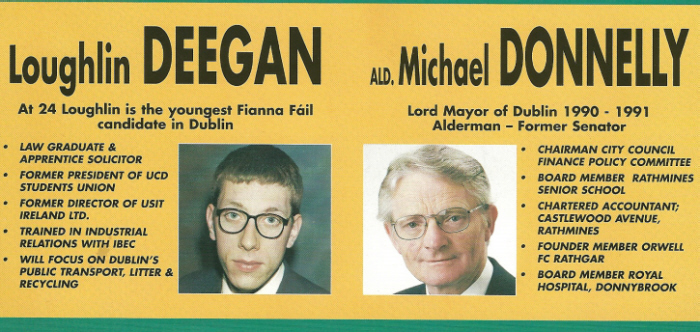 Loughlin Deegan, Michael Donnelly- Fianna Fail -Rathmines 1999 Local Elections » deegandonn99