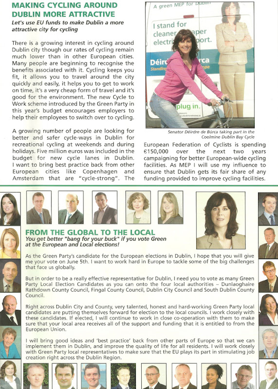 From the 2009 European Election Campaign a Newsletter from Green Party candidate Deirdre De Burca. She failed to be elected.