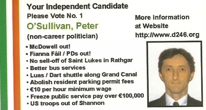 Peter O’Sullivan – Independent -Dublin South East 2007 » posull07a